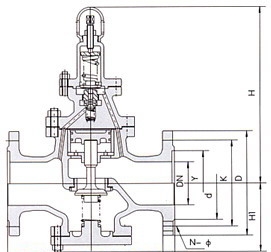 本系列減壓閥屬于先導活塞式減壓閥。由主閥和導閥兩部分組成。主閥主要由閥座、主閥盤、活塞、彈簧等零件組成。導閥主要由閥座、閥瓣、膜片、彈簧、調(diào)節(jié)彈簧等零件組成。通過調(diào)節(jié)調(diào)節(jié)彈簧壓力設(shè)定出口壓力、利用膜片傳感出口壓力變化,通過導閥啟閉驅(qū)動活塞調(diào)節(jié)主閥節(jié)流部位過流面積的大小,實現(xiàn)減壓穩(wěn)壓功能。